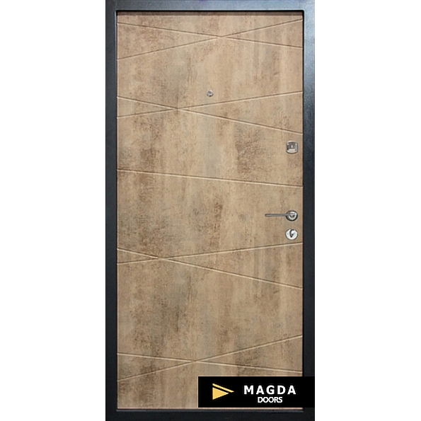 Торгова марка: Magda doors; Колекція: ТИП 2.2; Тип рами: Цільногнутий профіль 100мм; Ширина рами: 100мм; Товщина полотна: 90мм, торець зашитий МДФ; Товщина металу рами: 1,2мм; Товщина металу полотна: 1,2мм; Утеплення рами: Мінеральна вата; Утеплення полотна: Базальтова вата 50кг/м3; Товщина МДФ накладки: 16мм/10мм; Ущільнення: Двохконтурне SAP 346; SAP 338; Лиштва: Із скритим кріпленням 16мм; Механізм замка нижній: KALE 252R; Механізм замка верхній: KALE 257L (сувальдний); Серцевина: KALE; Регулятор притвору: Присутній; Нічний замок присутній; Броненакладка: З захистом від висвердлювання; Ручка на розеті: Barrera hr-08; Петлі: 3шт, 24мм; Вічко присутнє; Антизрізи: 2шт; Нержавіючий поріг; Призначення: Внутрішня; Тип покриття: ПВХ.