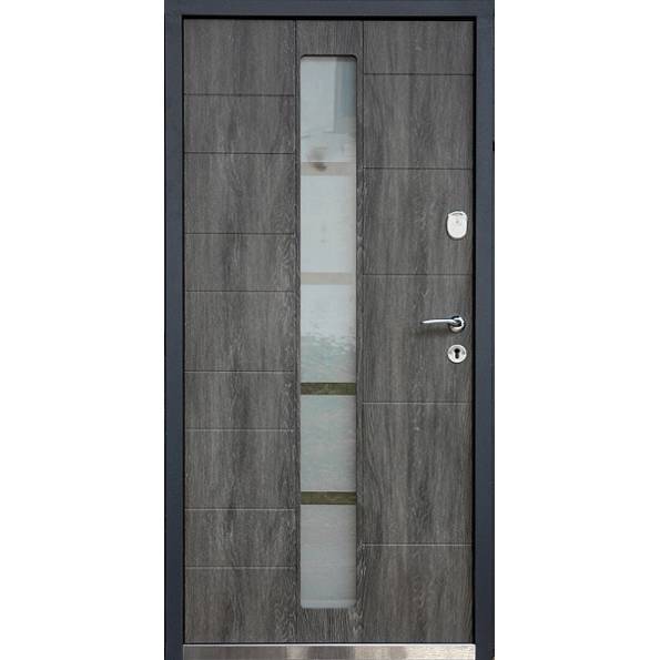 Торгова марка ARTIZ, Колекція Арт Стріт, Назва моделі СТ-102, Колір зовнішній RAL 1409(сірий), Колір внутрішній Біле дерево, Тип рами Цільногнутий профіль 110мм, Додаткова опція Зсередини рама обшита МДФ, чорна фурнітура, Ширина рами 110мм з лиштвою, Колір рами Сірий (RAL 1409), Товщина полотна 80мм, Товщина металу рами 1,4мм, Товщина металу полотна 1,4мм, Утеплення рами Мінеральна вата, Утеплення полотна Базальтова вата, Товщина МДФ накладки -/10-16мм, Ущільнення Двохконтурне "V", Лиштва В колір рами, Механізм нижній/верхній: СLASS 252R/CLASS 257L (сувальдний) або аналоги, Серцевина Виробник Китай, Регулятор притвору Присутній, Нічний замок ВІДСУТНІЙ, Броненакладка Втоплена, Ручка на розеті, Петлі 3шт, 20*140мм, Вічко відсутнє, Антизрізи 2шт, Нержавіючий поріг присутній, Призначення Зовнішня, Тип покриття Метал фарбування / ПВХ термо, Глуха